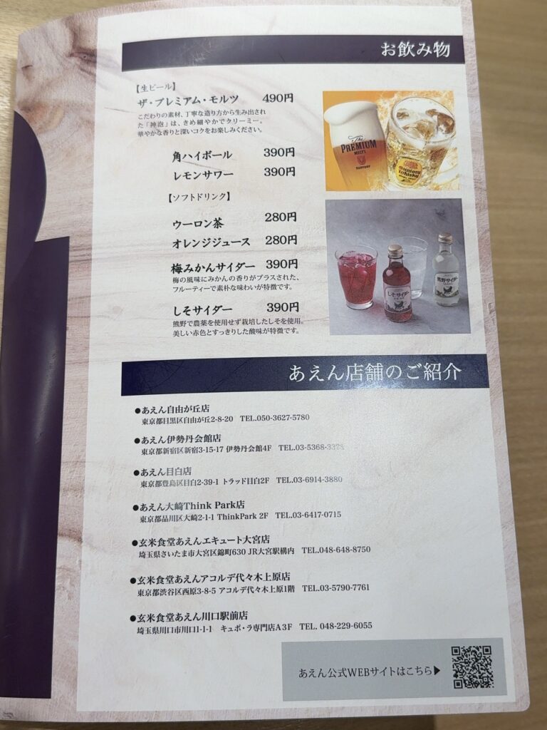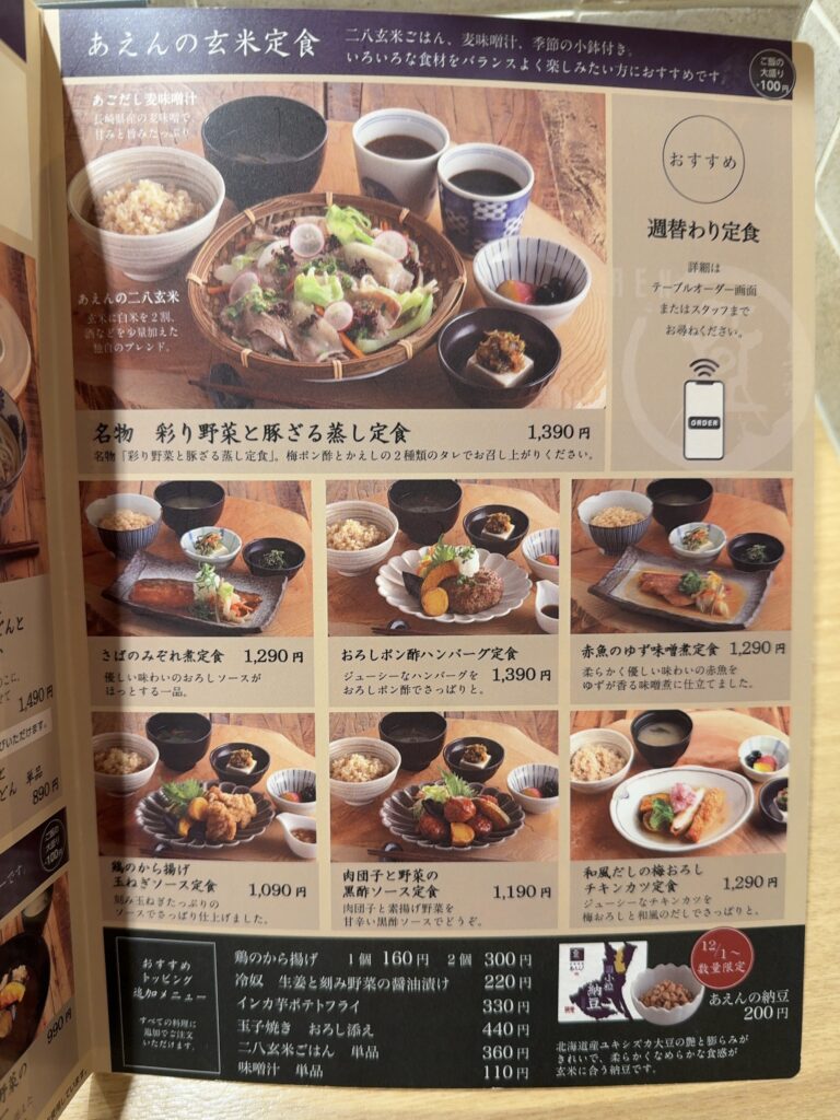 あえんは店舗ごとにメニュー構成が多少異なる場合がありますが、川口駅前店のメニューは定食・単品ともに選択肢が多く、利用シーンを選びません。
