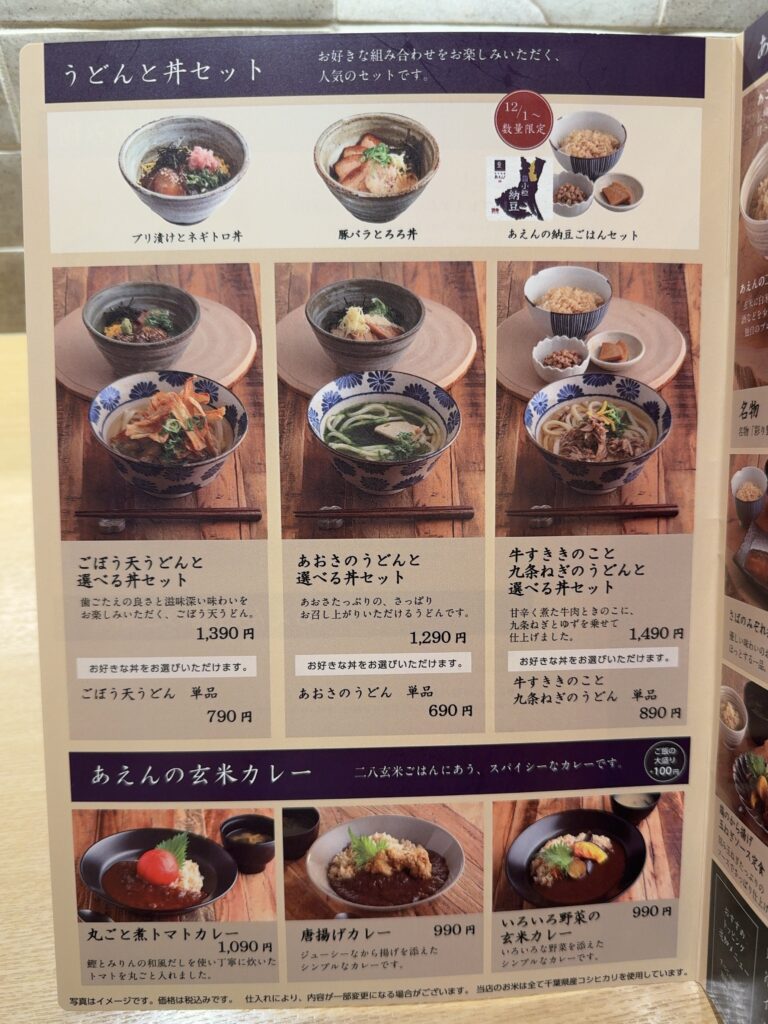また、玄米カレーやうどんなどしっかり感がありつつもあえんならではの優しい味わいのメニューもあります。