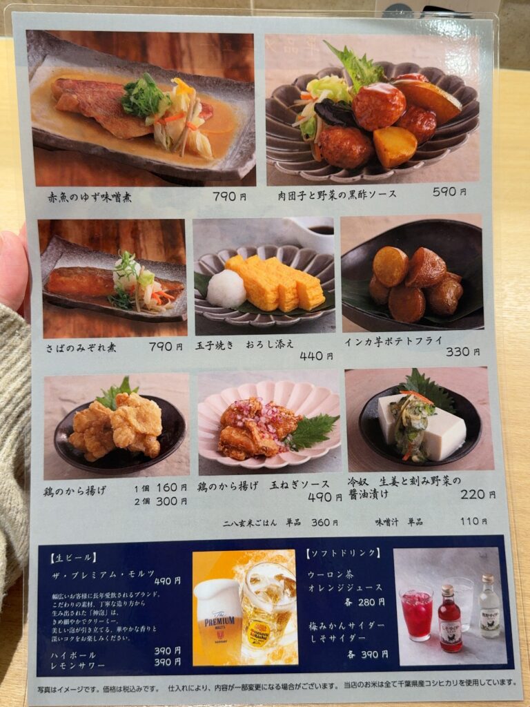 そのほかにも、焼き魚や煮物などの一品メニューがあり、川口駅前店ではお酒と合わせて楽しめるメニューも用意されています。