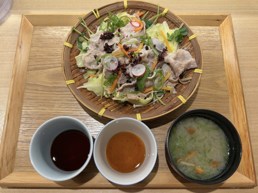 今回食べたのは「彩り野菜と豚ざる蒸し」