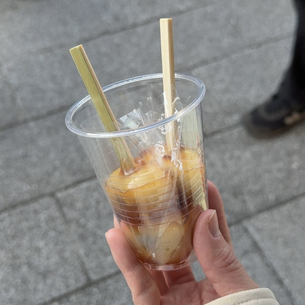 仲見世通りでの食べ歩きに、だんごはやはり定番。歩き疲れたときの小休憩にもぴったりです。