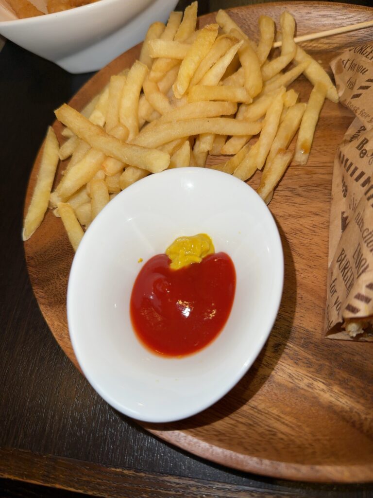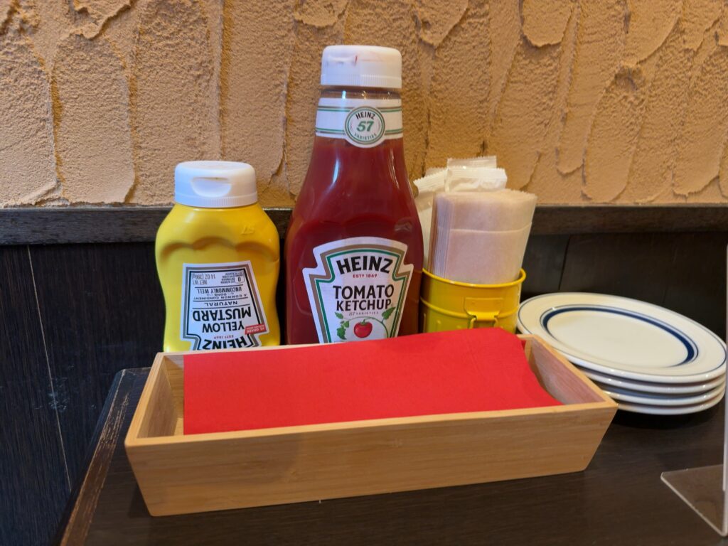 ポテトは比較的薄味なので、卓上のケチャップやマスタードで好みに調整できます。