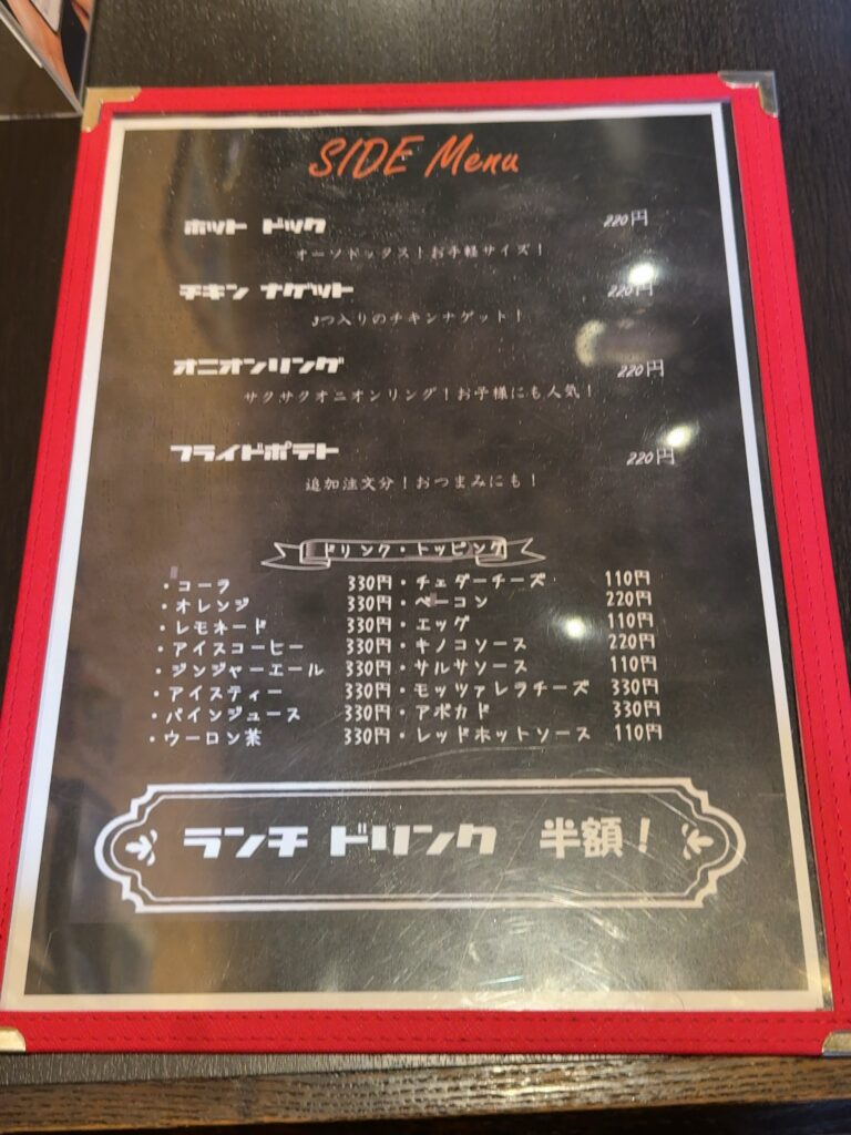 そのほか、ホットドッグやオニオンリング、チキンナゲットなどのサイドメニューも用意されています。