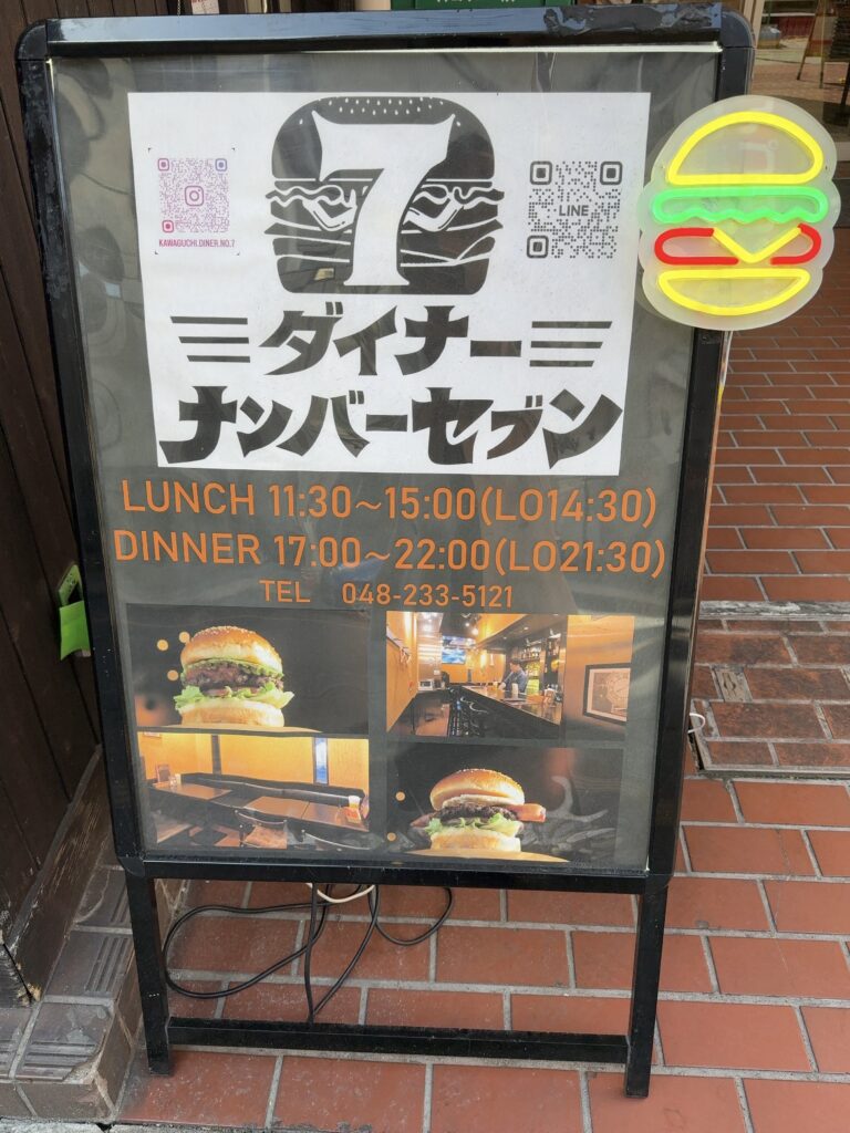 川口市役所近くにあるダイナーナンバーセブンは、ふわっと甘いバンズと肉汁あふれるパティが楽しめるハンバーガー専門店。