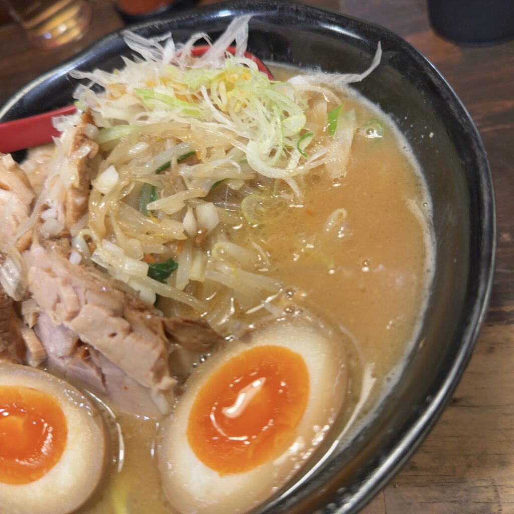 味卵味噌チャーシュー麺を野菜増しでいただいた今回は、濃厚なのに重たすぎず、最後の一口まで飽きずに楽しめる一杯でした。