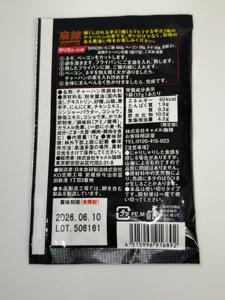 麻辣味でありながら、ご飯を食べたい方におすすめなのが、麻辣チャーハンの素。