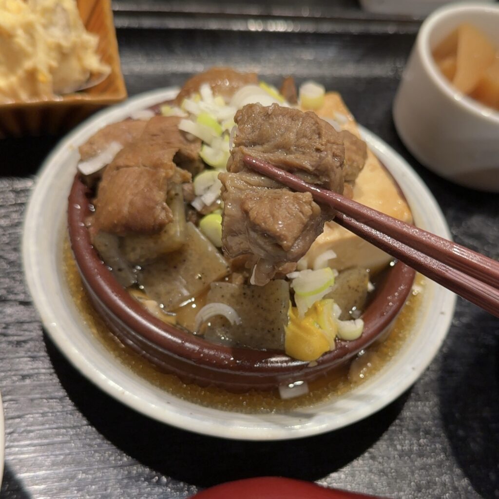 牛すじはやわらかく煮込まれていて、豆腐にも味がじんわり染みています。