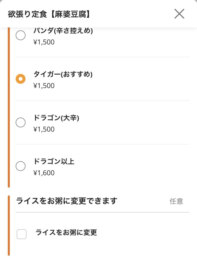 辛さも4段階から選択でき、タイガー(おすすめ)にしました。