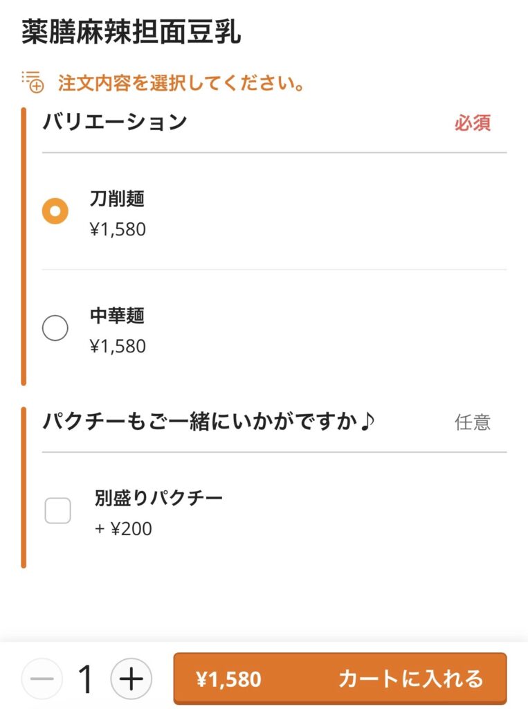 今回食べたのは『薬膳麻辣担面豆乳』1580円