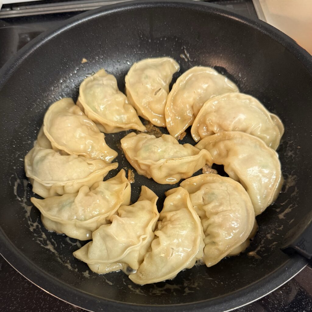 ■油 適量①フライパンに油を入れ、餃子を並べ、中火で焼く