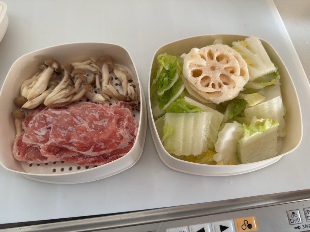 お休みの日に、野菜を切って小分けに冷凍しておくと簡単に蒸し料理が楽しめるのでおすすめ。