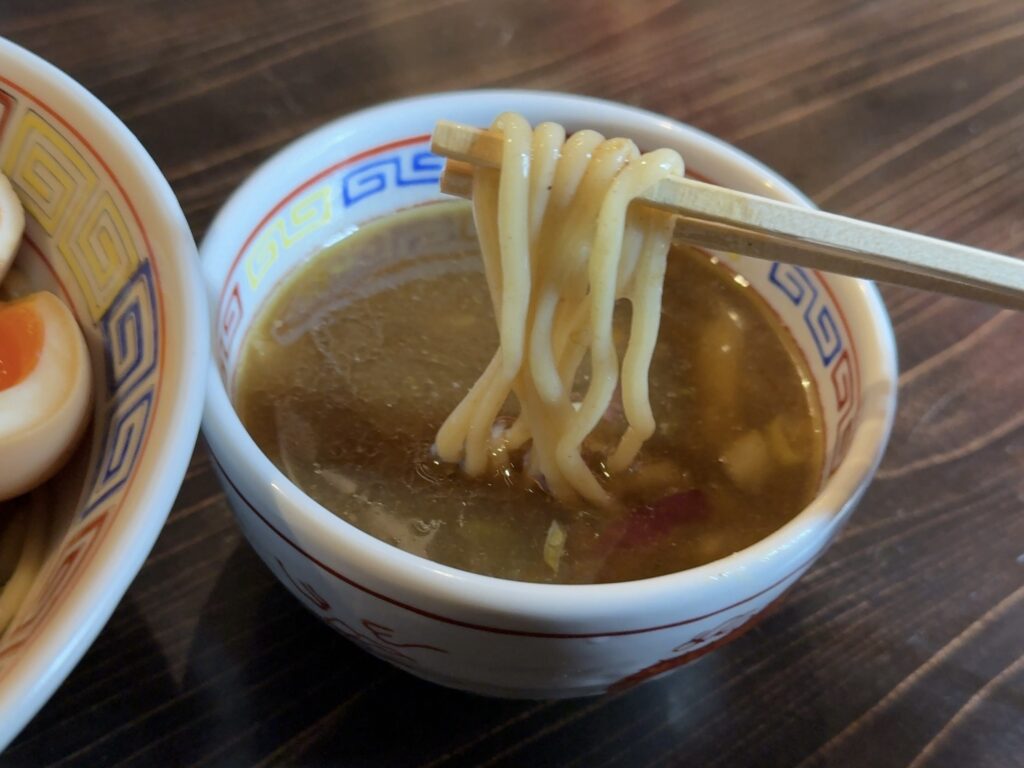 つけ麺ならではの、太麺がしっかりとスープに絡みます。