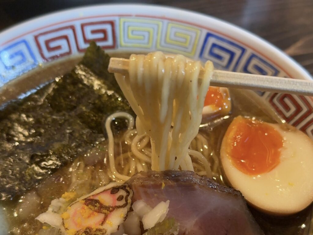 適度に縮れた麺はスープとの絡みが良く、口に運ぶたびに一体感を感じます。
