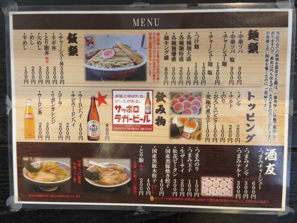 定番のラーメン以外にもメニューが豊富で、期間限定メニューなど遊び心詰まっています。