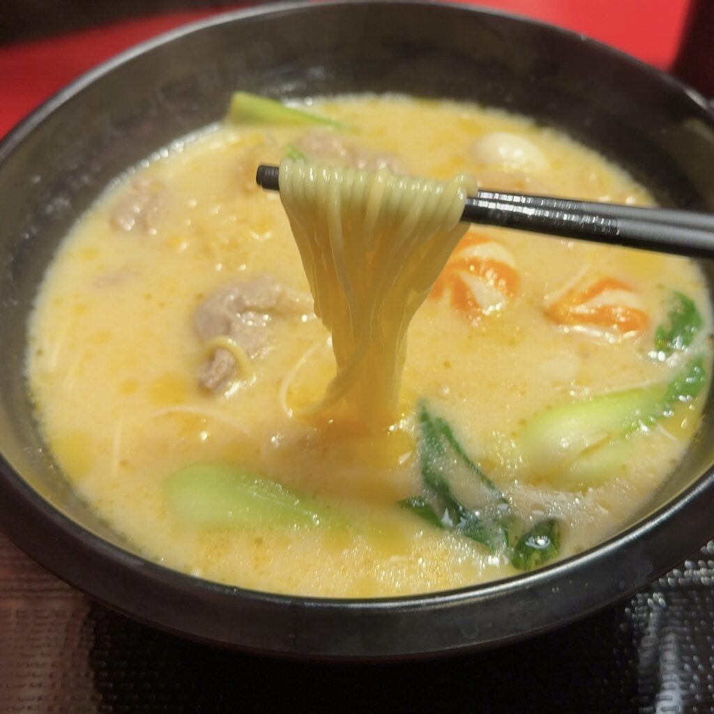 サービス麺はトウモロコシ麺を選択、ちゅるもちで食べやすいところが好きです。
