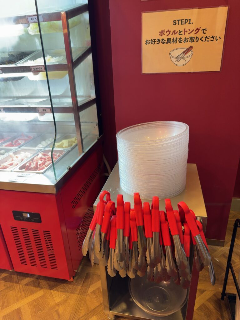 ボウルとトングを取り、お好きなトッピングを選んでいきます。 - 注文〜お会計