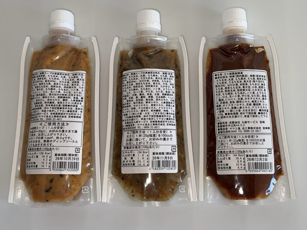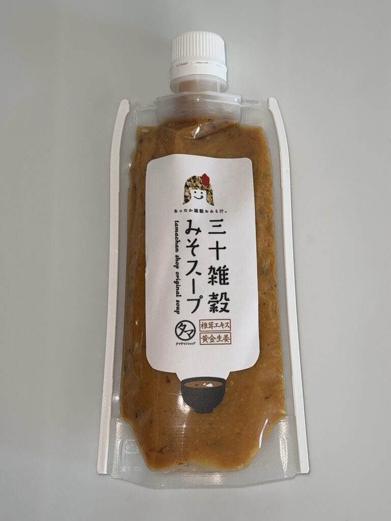 老舗味噌屋から生まれた本格スープで、三十雑穀をベースに、味噌を使った深みのある味わいが特徴です。