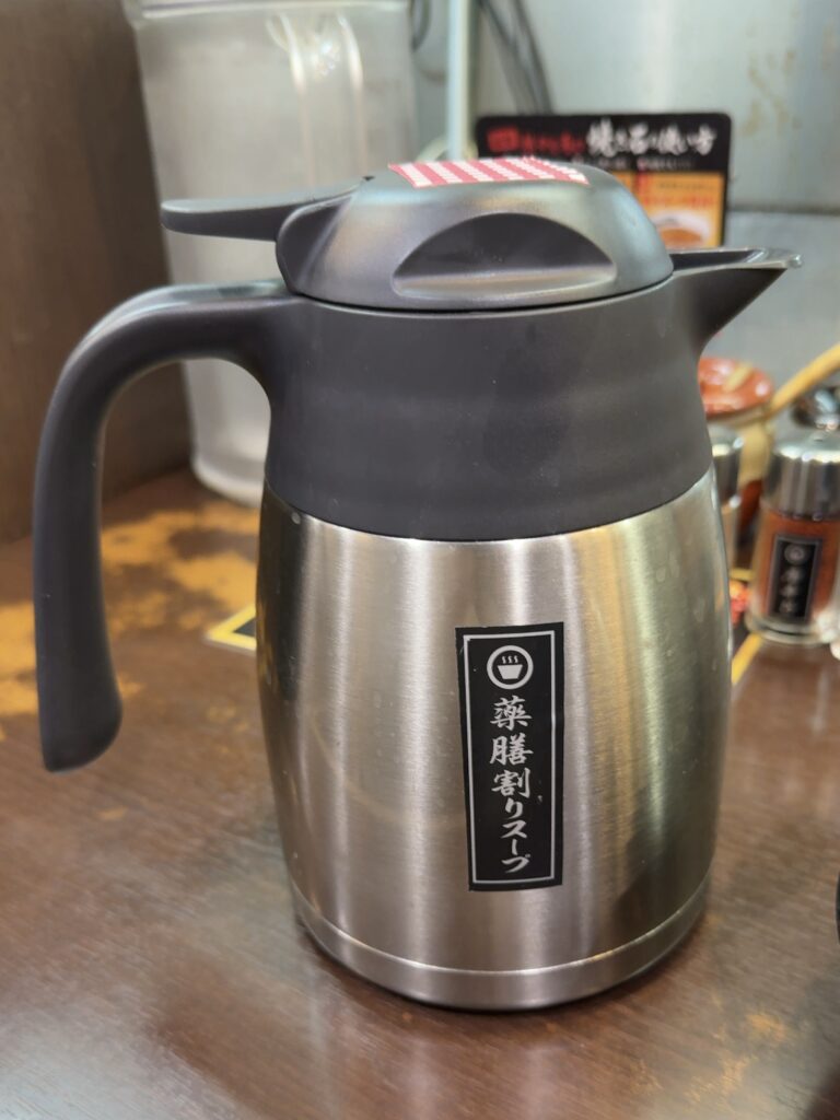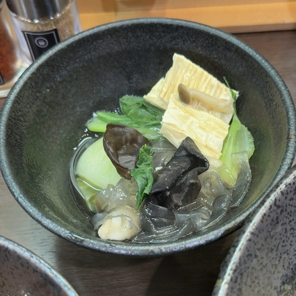 通常の割りスープとは異なり、出汁の中にほんのり薬膳の風味が感じられ、最後まで飽きずに飲み干したくなる優しい味わいでした。
