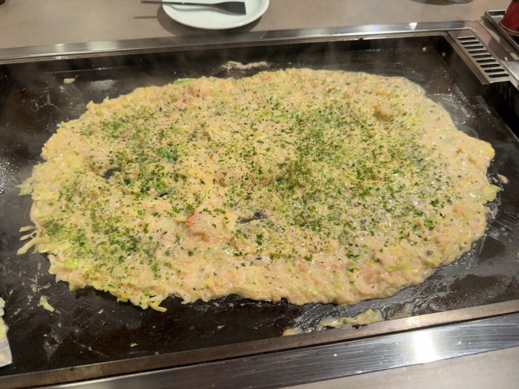 「もんじゃ焼きは自分で焼くのが難しそう」と感じる方も多いですが、くうやではスタッフが仕上げてくれるため、初めてでも戸惑いにくいのが魅力です。