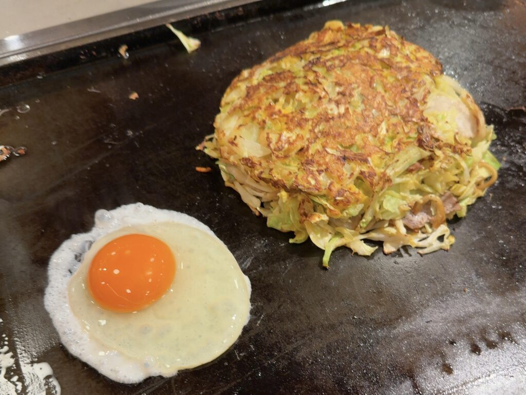 モダン焼きは、お好み焼きに麺を加えたスタイル。