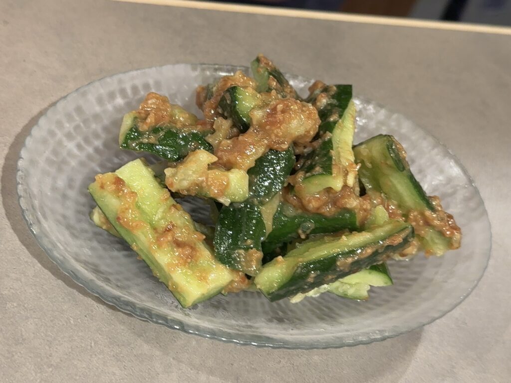 鉄板料理が続く中で、さっぱりとした一品として注文しやすいのがたたききゅうりの梅さわび和えです。