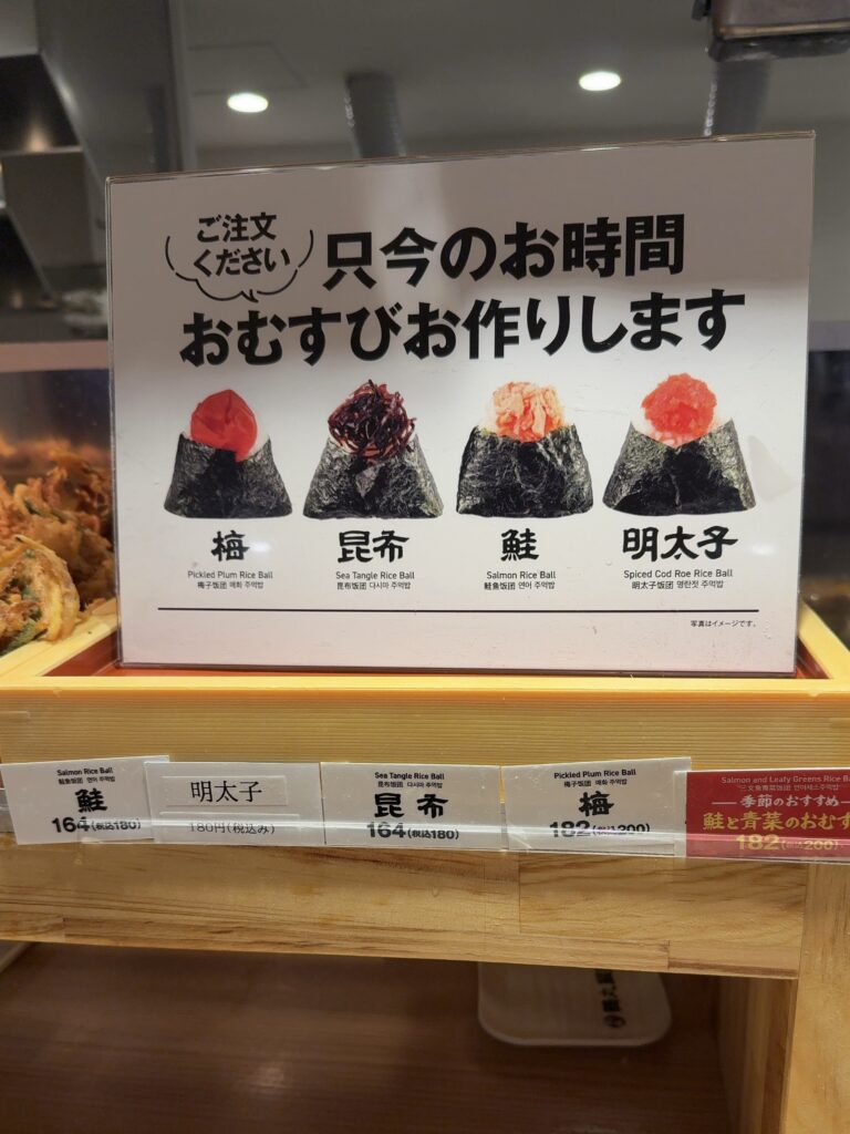 天ぷらの並ぶカウンターはどれも揚げたてで、ついつい取りすぎてしまいそうになります。