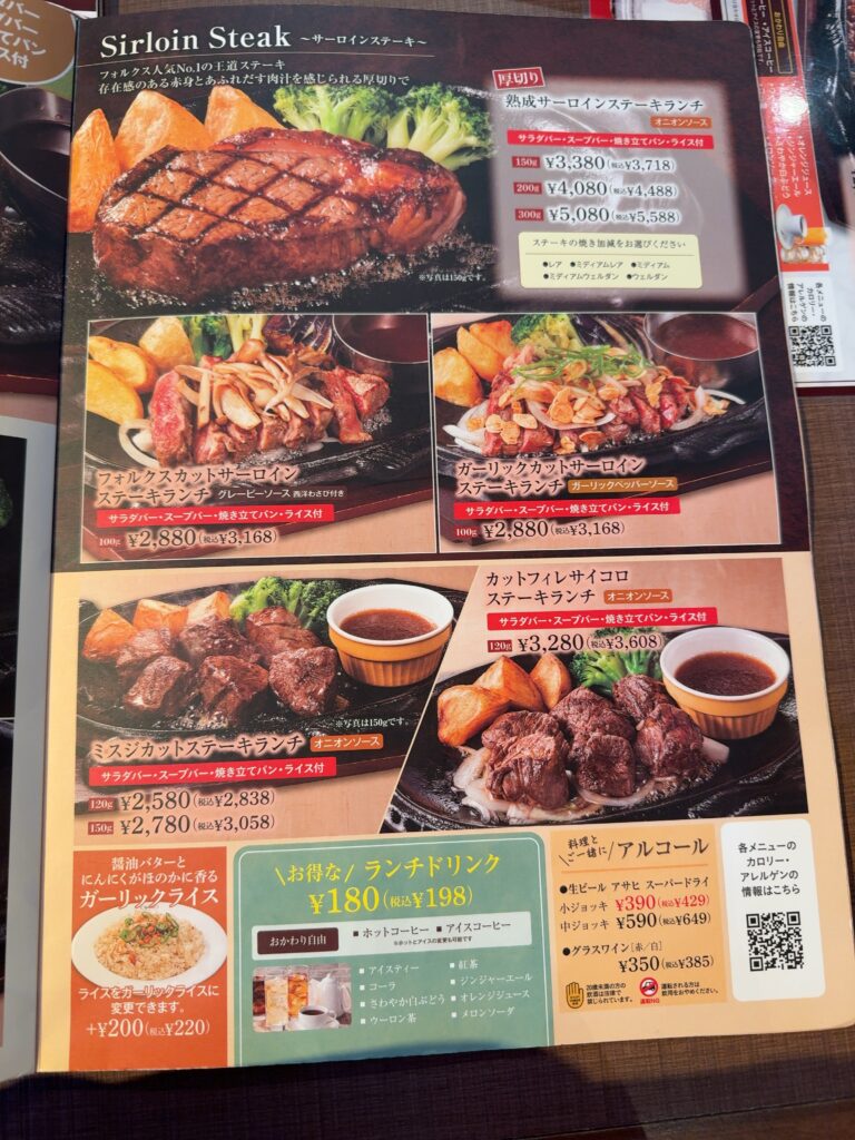 お得なハンバーグメニューから、贅沢なステーキまで、幅広いメニュー展開。
