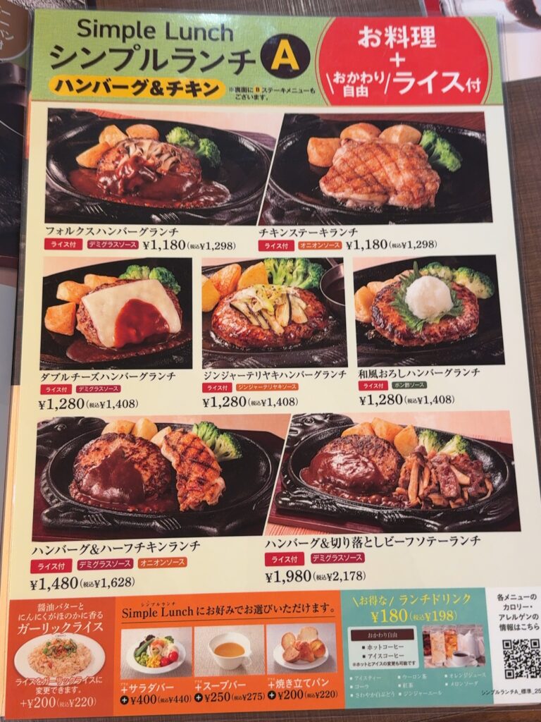 フォルクスのホリデーランチはハンバーグ好きにおすすめ|食べ放題も充実